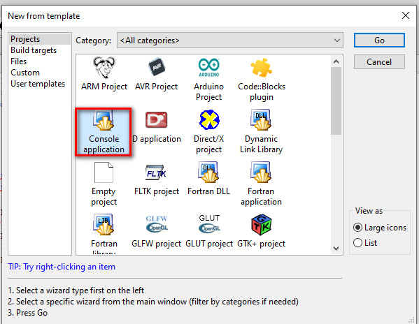Selanjutnya teman-teman pilih console aplication. Yaitu yang sudah dikotakin warna merah ya. Klik 2x pada bagian console aplication/bisa mengklik go.